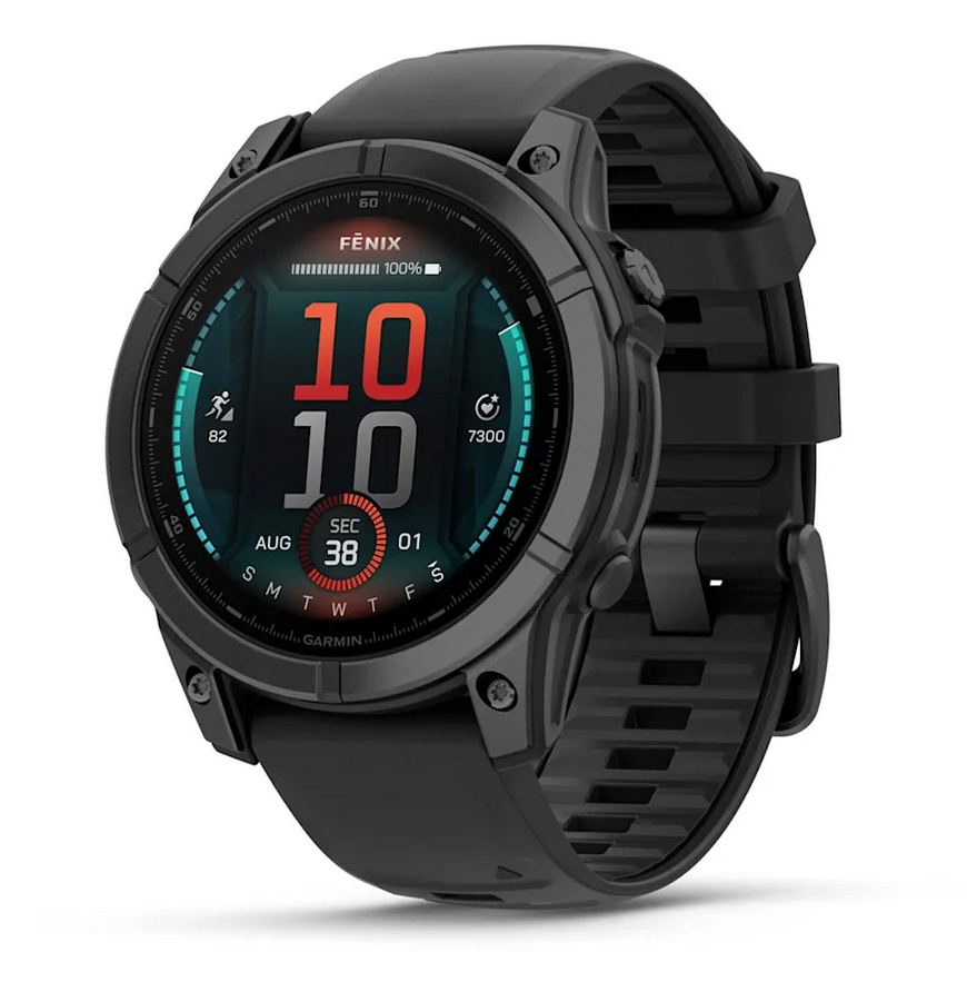 fenix E – 47 mm, AMOLED Slate Gray Steel with Black Silicone Band